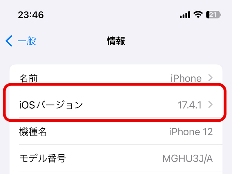 iPhone または iPad の 設定 >> 一般 >> 情報 にてご確認ください。